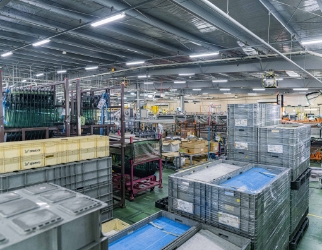 複層・強化・合わせそれぞれの生産ラインに分岐