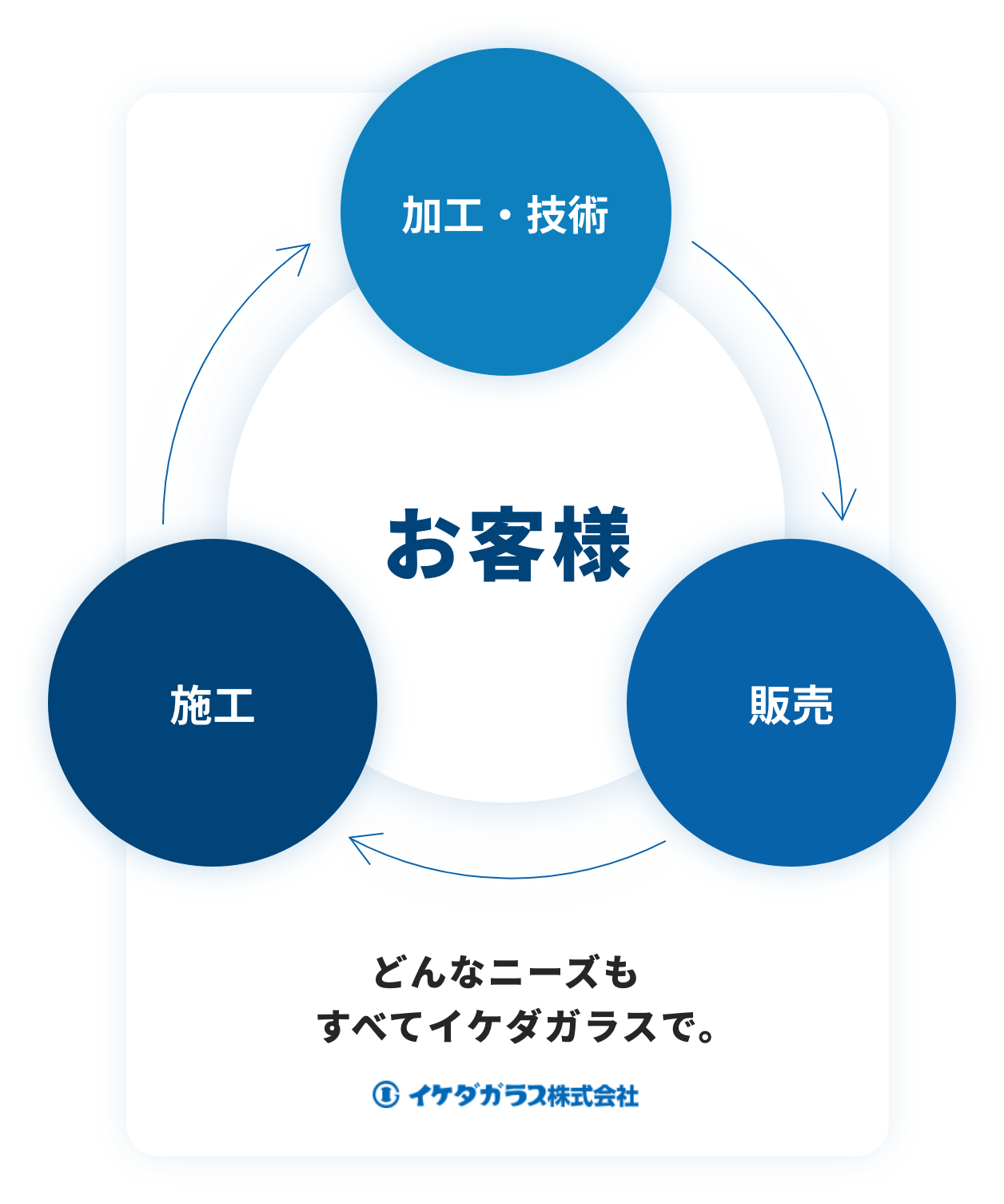 イケダガラスが業界で生き抜くことができた理由、どこにも負けない強さをご紹介します。