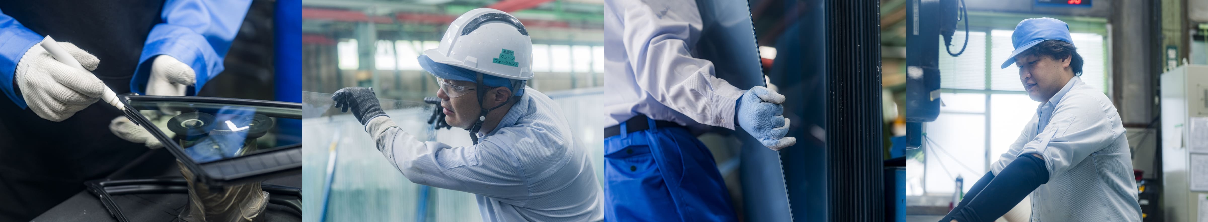 現在は、イケダガラス株式会社、株式会社池田硝子工業所、株式会社クリーンガラスの3社を有し、建築ガラス、自動車ガラス、産業ガラスの3本の事業を柱に、生産から販売、施工までを一貫した体制のもとで行う総合加工ガラスメーカーとして努力を重ねております。